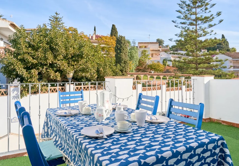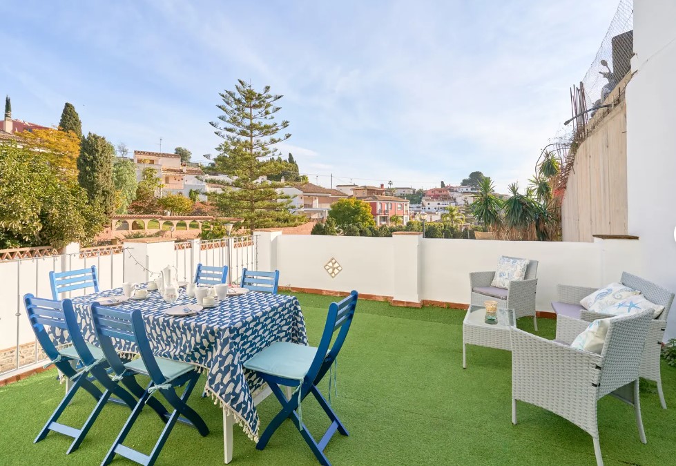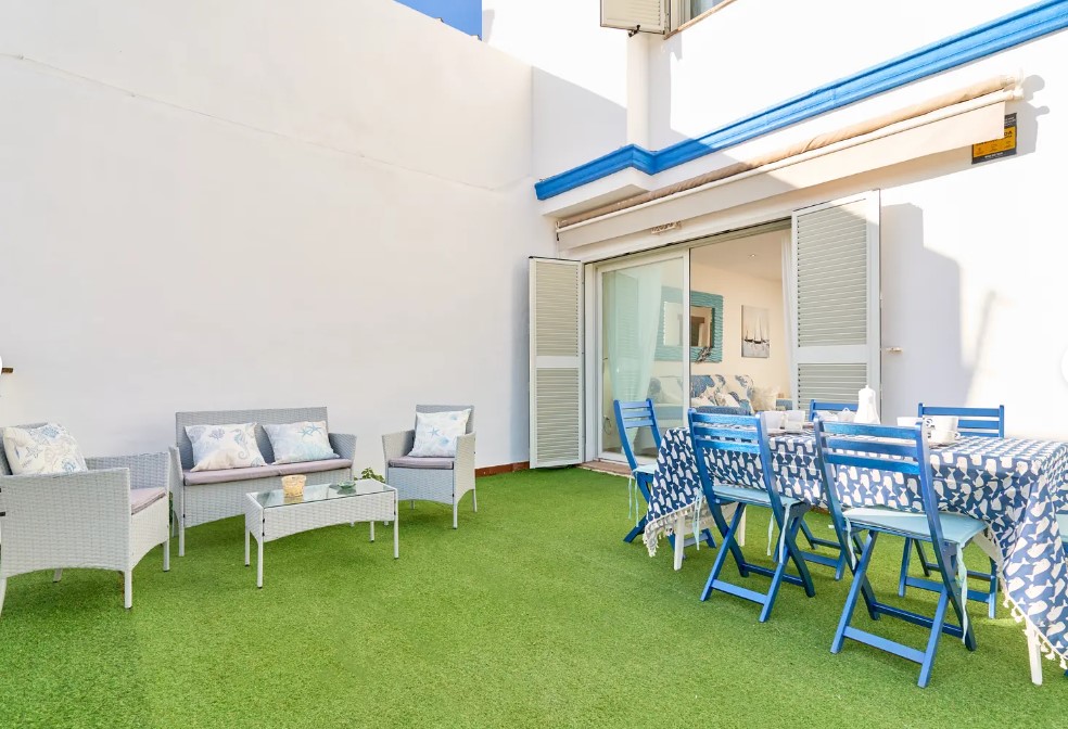 Relájese en la acogedora terraza privada, ideal para comer al aire libre.