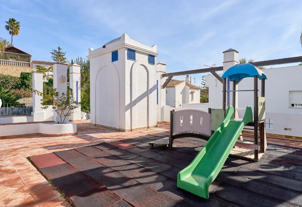 Además, en la urbanización, podrá disfrutar de una preciosa piscina comunitaria con forma de lago, preciosos jardines tropicales, aparcamiento y una zona infantil para los más pequeños.