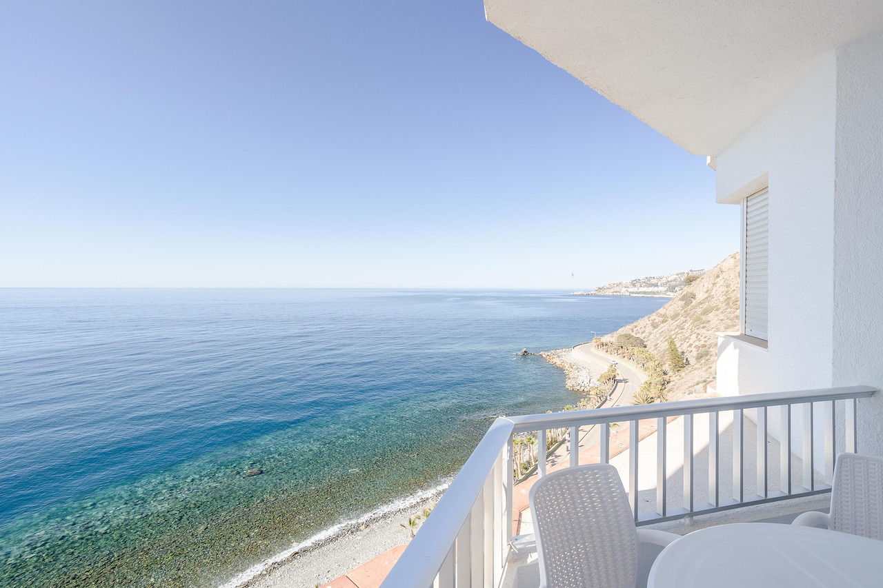 Disfruta de unas vacaciones inolvidables en este acogedor y luminoso apartamento, ubicado en la 10ª planta del complejo Los Ramos, con una terraza amueblada que ofrece vistas panorámicas a la Playa de San Cristóbal, al casco urbano de Almuñécar y al mar Mediterráneo.