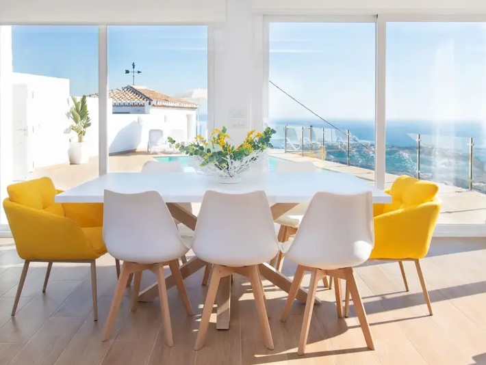 Los amplios ventanales conectan el interior con el exterior, permitiendo que la luz natural y las vistas panorámicas sean protagonistas en cada rincón.