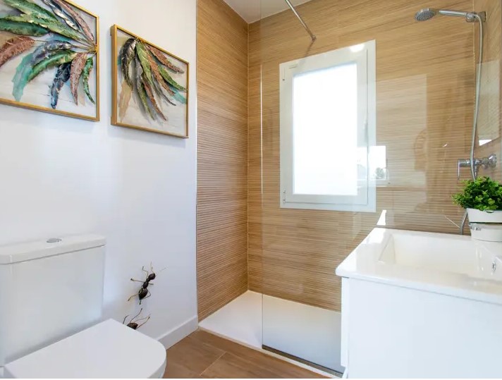 2 baños completos, uno de ellos junto a la piscina
