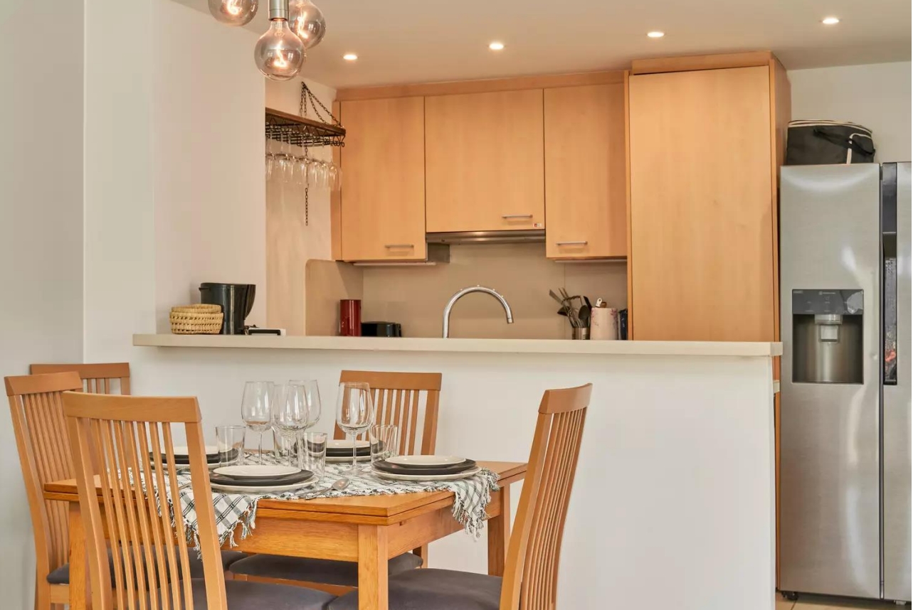 Esta propiedad de 2 plantas tiene capacidad para 4 personas y cuenta con 2 dormitorios, 1 baño, un salón luminoso y una cocina de diseño totalmente equipada, ideal para preparar tus comidas mientras compartes momentos con familia o amigos.